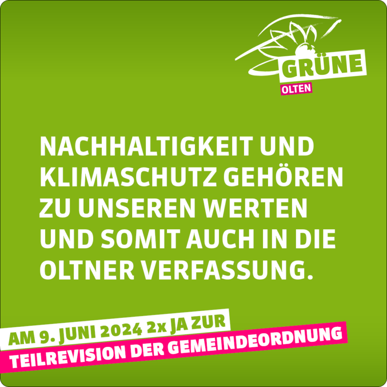 Abstimmung vom 9.Juni: Ja zu Klimaschutz und Nachhaltigkeit in der Oltner Gemeindeordnung