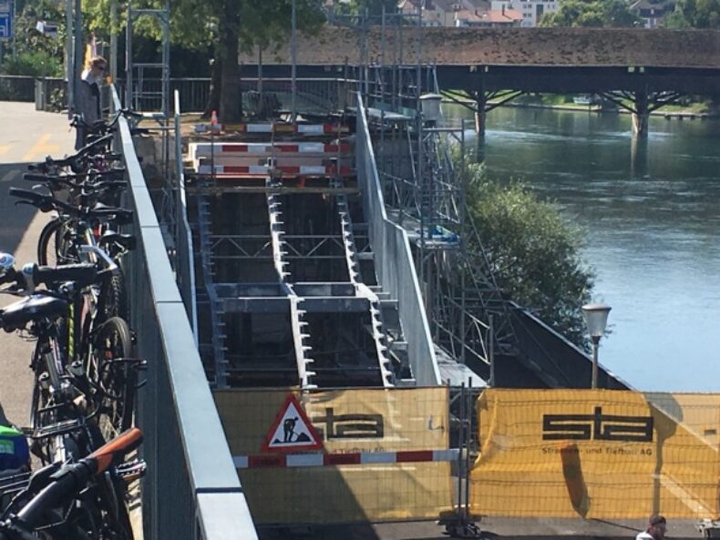 Im Juni startete diese Sanierung: Die Treppe selbst sowie der ganze Ländiweg zwischen Bahnhofvorplatz und „Wildsau“ und wurden gesperrt. Schon nach wenigen Tagen, anfangs Juli, wurden die begonnen Arbeiten eingestellt. Seither ruhen sie seit bald drei Monaten. Einem Presseartikel von Mitte August war zu entnehmen, dass die Baufirma offenbar zu viele Arbeitsaufträge angenommen hätte und darum die Arbeiten an der Treppe und ihren Zugängen stilllegen musste. Im besagten Presseartikel wurde in Aussicht gestellt, dass die Arbeiten bis Ende August wieder aufgenommen und beendet würden. Passiert ist jedoch nichts, ausser dass ca. am 10. September das Gitter zurückgeschoben wurde, das den Zugang zum Ländiweg zuvor versperrte. Der Grund lässt uns nochmals staunen – die Eröffnung verzögere sich aufgrund «fehlender Elemente» bis November.