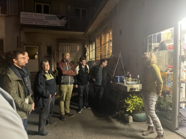 Im Anschluss an die Schnitzeljagd fand im innovativen Hinterhof Olten ein Apéro statt. Der Hinterhof Olten ist ein einzigartiges Geschäft, das gebrauchte Kleider und weitere nachhaltige Produkte anbietet und dabei mit kreativen Konzepten und Ideen die Kreislaufwirtschaft aufgreift. Hier können Besucherinnen und Besucher nicht nur Second-Hand-Kleidung finden, sondern auch die innovativen Ideen erleben, wie man durch Upcycling und nachhaltige Produktion die Umwelt schonen und gleichzeitig ein Geschäftsmodell etablieren kann.