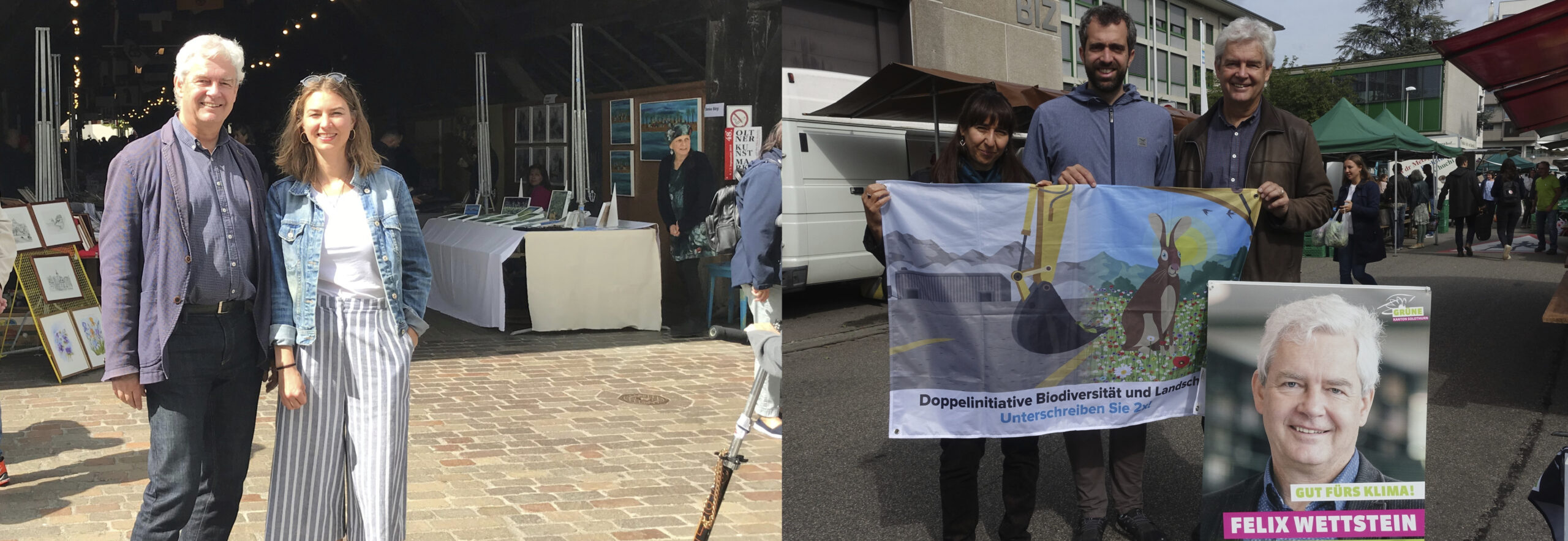 Am Bifangmarkt haben Anita Huber, Felix Wettstein und Raphael Schär-Sommer für die Landschafts-, Biodiversätits- und Gletscherinitiative Unterschriften gesammlt. Der Bifangmarkt wie auch der Kunstmarkt sind gute Beispiele, was auf öffentlichem Grund entstehen kann sobald er nicht mehr nur für den Autoverkehr herhalten muss. Die Grünen setzen sich ein für eine urbane Lebensqualität und eine nachhaltige, emissionsfreie Mobilität.
