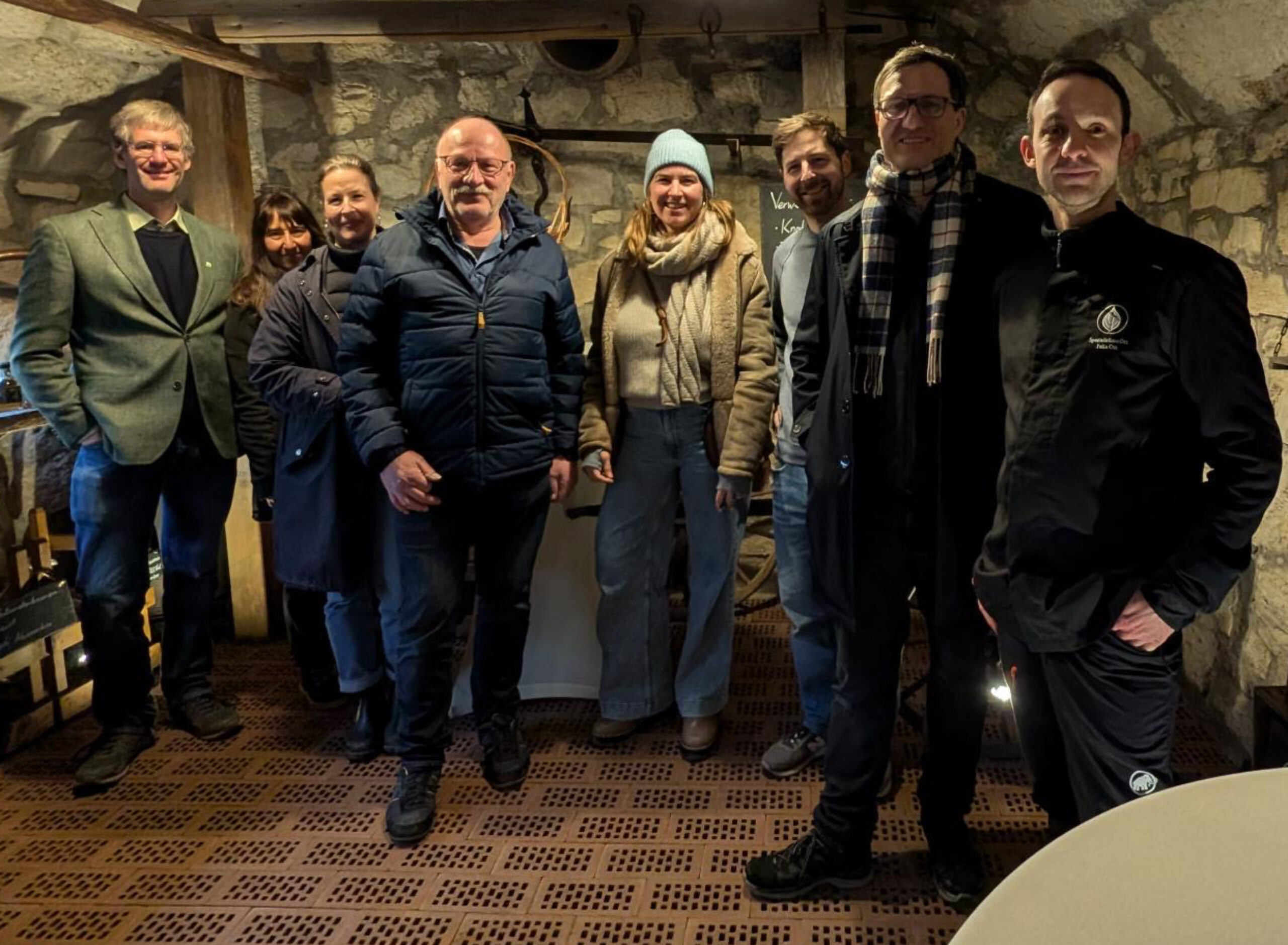 In Dulliken traf die Gruppe ihren Parteikollegen und Kantonsratskandidat Alain Huber. Dieser hatte zum Apéro und Infoanlass im Spezialitätenkeller von Felix Ott geladen. Nachdem dieser den Teilnehmenden ein Glas Weisswein oder hausgemachter Sirup ausgeschenkt hatte, erzählte er davon, wie er in seinem Familienbetrieb mit Zutaten aus dem hauseigenen Garten teils ungewöhnliche Köstlichkeiten herstellt, darunter Lindenkapern, Dulliker Fichtenknospen,