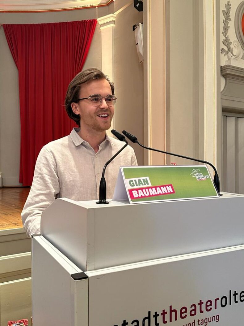 Die aus grüner Sicht so erfolgreiche Woche wurde abgerundet durch die Kolumne von Gian Baumann in der aktuellen Ausgabe der Neuen Oltner Zeitung und dem Besuch der GRÜNEN SCHWEIZ im Rahmen der nationalen Delegiertenversammlung, die am Samstag im Stadttheater stattfand. Dort glänzte unser junggrüne Gemeinderat Gian Baumann ebenfalls mit einer mutmachenden Begrüssungsrede und anschliessendem Auftritt im Info-3 des SRF (ca. ab 5:15).