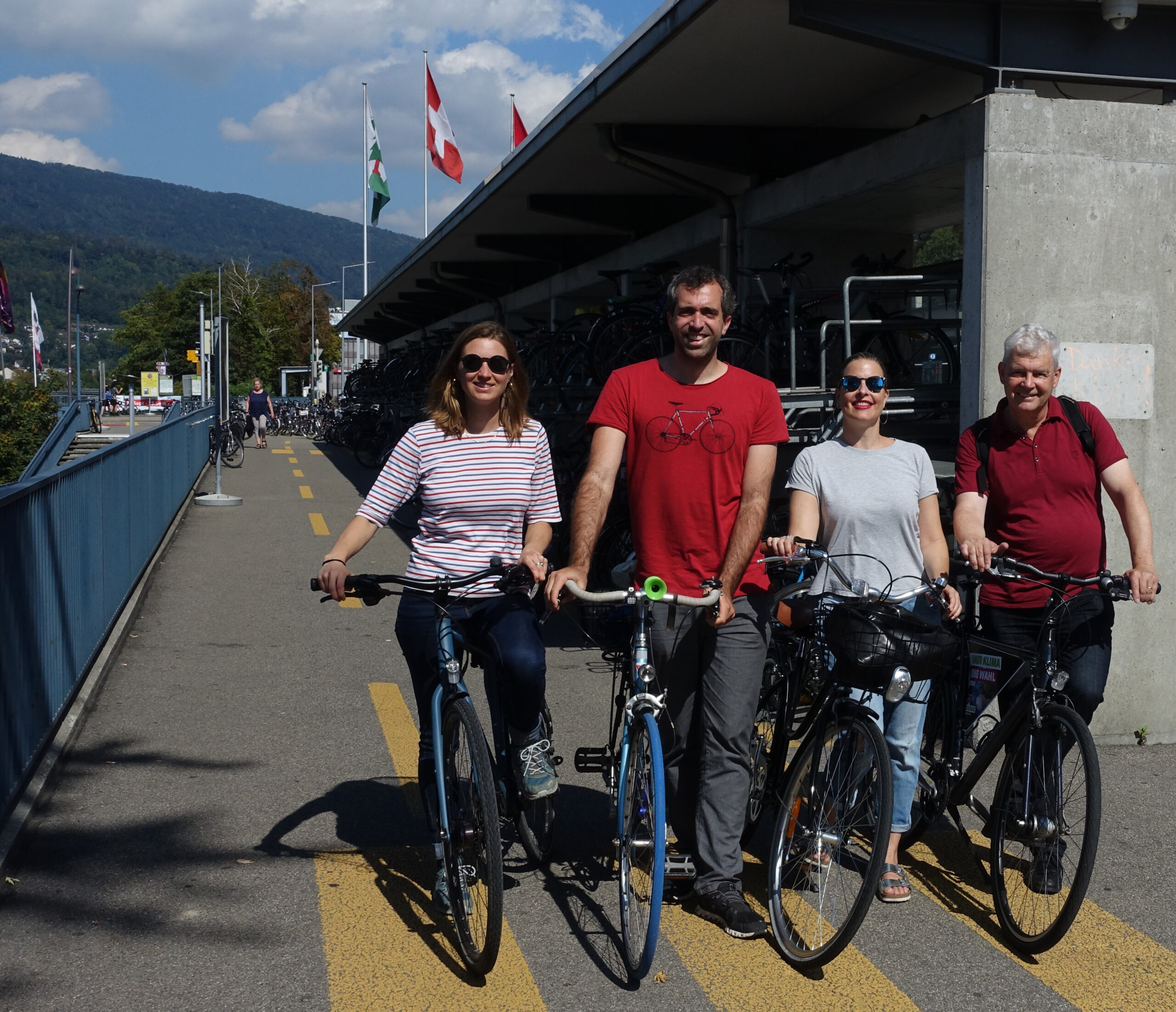 Letzte Woche nutzten Anna Engeler, Myriam Frey Schär, Raphael Schär-Sommer und Felix Wettstein aus Olten, die gemeinsam auf den grünen Listen für den Nationalrat kandidieren, die allerletzten Sonnenstrahlen des Frühherbstes für einen kleinen ÖV- und Langsamverkehrs-Ausflug.